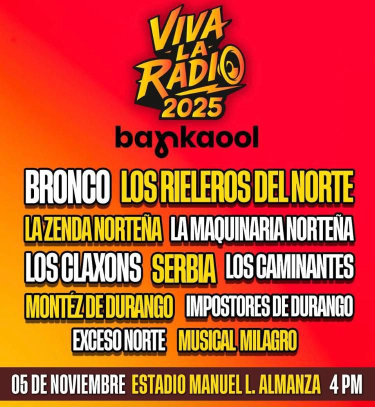 Chihuahua, Chih. – La edición 2025 de Viva la Radio promete una jornada inolvidable este 5 de noviembre en el Estadio Manuel L. Almanza, con un cartel que fusiona lo mejor del regional mexicano y el pop rock nacional. Entre los nombres más esperados destacan Serbia y Los Claxons, dos agrupaciones que aportarán frescura y energía juvenil a...